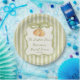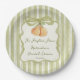 The perfect pair pear Sage green stripes retro elegant bridal shower monogrammed paper plates, retro bridal shower personalized paper plates, fall bridal shower personalized table decor, earthy stripped bridal shower plates, pear bridal shower, yellow bridal shower paper plates, grand millennial bridal shower personalized party supplies printed paper plates, coquette bridal shower personalized custom paper plates the perfect pear bridal shower printed paper plates