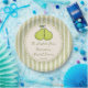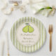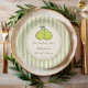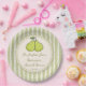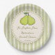 The perfect pair pear Sage green stripes retro elegant bridal shower monogrammed paper plates, retro bridal shower personalized paper plates, fall bridal shower personalized table decor, earthy stripped bridal shower plates, pear bridal shower, yellow bridal shower paper plates, grand millennial bridal shower personalized party supplies printed paper plates, coquette bridal shower personalized custom paper plates the perfect pear bridal shower printed paper plates