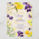 Perfect Pansies Wedding Invitation. This invitation design is a mix of yellow flowers with pretty purple pansies being the highlighted flower. This purple and yellow floral design is part of our Perfect Pansies Wedding Collection at MetroEvents on Zazzle. Coordinating Perfect Pansies wedding supplies are available.
