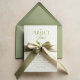 Celebrate in style with this trendy green bridal shower invitation, featuring a 'Perfect Pear' theme illustration with bows.