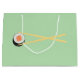 Japanese food, salmon sushi with chopsticks, fish and rice illustration.