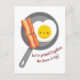 A cute illustration of bacon and egg in a saucepan with egg white in a heart shape. The amusing love message reads "We're perfect together like Bacon & Egg!" Perfect for your sweetheart for Valentine's day or sweet love occasions.