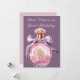 Beautiful card with pink perfume bottle with jewel encrusted lid and jewels in center of bottle. Bow in purple hues beneath lid. Glamor and Luxury in a card. Able to edit and personalize card with own message.