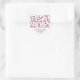 An address sticker featuring a design consisting of pink and black retro cat eye sunglasses, pink change purses with grey polka dots, pink clutch purses with black bow, pink lipsticks, pink gemstones, and bottle of perfume with pink atomizer.