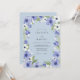 Delicate periwinkle and white blooms with lush green foliage artfully border this design. The artistic watercolor style evokes a dreamy, ethereal atmosphere, perfect for a romantic celebration.