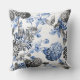 Periwinkle Blue Black White Botanical Floral Toile Cushion