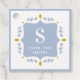 This gift tag design brings features a periwinkle blue scalloped frame with a modern leaf border along the edge. There is a place in the centre of the frame for you to add your initial. The back of the card has a coordinating blue background. Below is a place to personalise with your name.