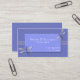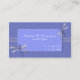 Chic business card, with graphics of a periwinkle blue textured looking background, and two periwinkle blue embroidered looking dragonflies decorating the edge of the text area. Text in white, on the front and back, is ready to personalise for yourself.