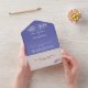 Vintage periwinkle blue and white floral frame with initials all in one wedding invitation. The elements of this wedding invite are the white beautiful vintage frame made of acanthus leaves and flowers with your initials and the fonts on periwinkle blue background. The tear off RSVP can be detached.