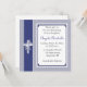 Elegant religious invitation in periwinkle polka dot background with side border and ornate crucifix decorated with butterflies. Invitations are easy to customise and come complete with envelopes and your choice of paper.