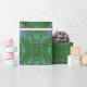 A colourful artistic abstract in periwinkle blue and green with a holographic look like an explosion of paint splats radiating out from the centre. #giftwrap #crafts