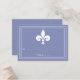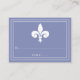 Elegant and simple Wedding Place Card featuring a fleur de lis against a Periwinkle background. This design is a unique choice for a modern wedding. Space is provided on this place card to write in the names and table numbers where each of your guests will be seated. Click "Customise It" to find more personalisation options.