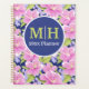 This planner features a floral periwinkle, pink, and lime pattern. Personalise the initials and planner year inside the blue and white circle.