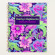 This planner features a high-contrast Periwinkle, Pink, and Lime retro floral pattern on the front and back. Personalise the front with your name and the current year.