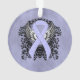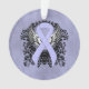 Periwinkle ribbon with angel wings and filigree. The periwinkle ribbon is associated with Anorexia Nervosa Awareness, Bulimia Nervosa Awareness, and Eating Disorders Awareness in February. In April with Irritable Bowel Syndrome Awareness. In November for Stomach Cancer Awareness. It's also associated with Acid Reflux Disease Awareness, Eosinophilic Disorders Awareness, Oesophageal Cancer Awareness, Gastric Cancer Awareness, GERD Awareness, Gastroesophageal Reflux Awareness, Pulmonary Hypertension Awareness, and Small Intestine Cancer Awareness.