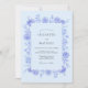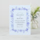 A delicate watercolor design features soft periwinkle blooms and lush greenery. The artistic floral arrangement evokes a gentle, romantic mood. Perfect for a springtime or ethereal celebration.