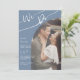 Celebrate your love story with this elegant wedding invitation featuring a heartfelt "We Do" script overlay and your favourite couple's photo. Set against a soft periwinkle blue background with clean serif and handwritten fonts, this design includes a convenient QR code on the back for RSVP or wedding website access. Ideal for modern, romantic, or spring weddings, and fully customisable for your special day.
