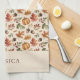 Peronalized Fall Earthy Orange Watercolor Leaves Tea Towel