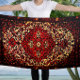 Oriental rug design in dark red and cream colour - an antique image is PRINTED on this beach towel - illustration from an antique book- it was edited and applied on these items by Alma Wad .