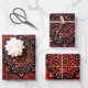 Persian carpet look in rose tinted field -    three  ,slightly  different wrapping paper sheets in  red  , classic decorating style .Design by Alma wad .