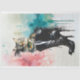 This artwork, titled “Regal Repose,” captures a fluffy Persian cat’s moment of tranquillity inside a sleek black leather boot. The cat’s luxurious fur contrasts with the boot’s smooth texture, while a peacock feather adds a touch of opulence. The background’s pinks and teals create a vibrant canvas that complements the scene’s whimsical charm.