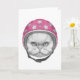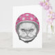 This design features a portrait of a Persian cat with a pink motorcyle helmet.