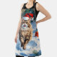 Persian Cat Sitting in Snow with Christmas Hat Apron