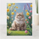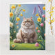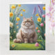 A cheerful Cat sits peacefully on lush green grass, surrounded by colourful spring blooms under a soft blue sky. This digital oil painting captures a serene moment with expressive brushstrokes, warm colours, and a sense of gentle joy.