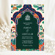Persian Floral Inlay Emerald Green Muslim Wedding Invitation