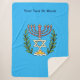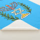 This image was adapted from an antique Persian Jewish tile and features a menorah with a Magen David (Star of David) framed by olive branches. The imperfections of the original, hand-painted image have been preserved. Add your own text to customise.