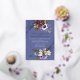 Stylish & elegant wedding invitation features gorgeous fresh floral bouquets for spring, summer, or fall weddings. Persian Periwinkle is a new medium dark periwinkle colour. Harmonises with dusty blues.