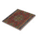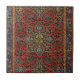 Persian Carpet - Arabic art pattern, Emile Prisses d’Avennes, printed in the book La Decoration Arabe. (1885). This image is a photographic reproduction based on an antique is a richly detailed Persian rug with an intricate design. It features a bold, symmetrical pattern in the centre, utilising geometric and floral motifs. The dominant colours are deep red with accents of gold, blue, and green. The border of the rug contains a repeated floral pattern, adding an additional layer of ornate detail. The craftsmanship is evident in the complex interwoven design elements and vibrant colours.