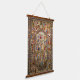 The polyester fabric displayed many wrinkles and several sharp creases throughout. At the bottom of the tapestry, I noticed a bulge in the fabric because it was not pulled tight enough before being connected to the wooden boards. It took me over an hour to spay water on the tapestry before putting it on an ironing board where I used a warm iron over a polyester cloth to remove the wrinkles and creases in the material. I was able to get out the wrinkles and creases that made that tapestry look as beautiful as its picture.