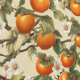 Persimmons illustration. Fruits, flowers and leaves on branches. Seamless pattern. Custom background colour.