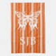Persimmon Victorian Stripe with Butterfly Monogram Tea Towel