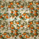 Persimmons illustration. Fruits, flowers and leaves on branches. Seamless pattern. Custom background colour.