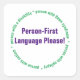 A design for people who prefer to use person-first language. Person-first language is a way of talking about disability that puts the person in front of the disability, e.g. "person with a disability" or "adults with intellectual disabilities". Many people feel that this type of language avoids dehumanising people with disabilities or making their disability an intrinsic part of them.