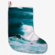 Person on surfboard with ocean waves small christmas stocking