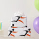 A black and orange icon symbol of a person running. This design looks really effective on these Wrapping Paper