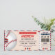 Our Personal Baseball Ticket Birthday Invitation is perfect for any baseball enthusiast's special day. These unique invitations are designed to resemble authentic game tickets, bringing the excitement of the ballpark to your celebration.