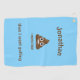 Funny poo emoticon golf towel with a blue background.