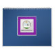 A quite simple personal calendar, yet with ornamental decor and a certain shine to the solid frame colours. Add your monthly photo and text. The wide frames are either blue, purple and silver. Look for other versions with different colour alternatives. There is one square photo and one text line for each month. If you want more text it's possible to enter a regular line break. The front page photo can be a 13th photo, or you can reuse one of the other photos. Text and photos can easily be customised.