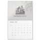 A quite simple personal calendar, yet with ornamental decor and a certain shine to the solid frame colours. Add your monthly photo and text. The wide frames are either pink, teal or silver. Look for other versions with fewer colour alternatives. There is one square photo and one text line for each month. If you want more text it's possible to enter a regular line break. The front page photo can be a 13th photo, or you can reuse one of the other photos. Text and photos can easily be customised.