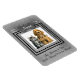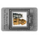 Design features a square frame to upload your photo into, a silver background and a pet tag to enter the name onto. Change the dates to the date of birth and passing of your pet or remove those options if you like. The phrase on the bottom says "The Memory of You Will Always be in our Hearts." Click on "customise it" if you would like to change the font colours, styles or placement.