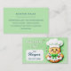 A pastel green business card designed for personal chefs and bakers, featuring a charming gingerbread chef and a fun, icing-inspired font. Great for dessert lovers and caterers.