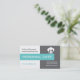 Personal chef minimalist eye-catching grey, white, aqua business cards featuring a white chef cap - toque with a fork, spoon and knife on grey background and the text “Personal Chef” in an aqua blue band. Perfect professional design for head cooks, personal chefs, culinarians, chef de cuisine, executive chef, chef manager.