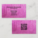 Pink leather sets off the background of this minimalist style business card design featuring a template name and title on the front and business details. Replace the QR code on the back with yours. Fill in the template fields or click customise to select a font style, size, and colour you like. Send clients to your website, photos, referrals or other page with the QR code link.