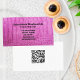 Pink leather sets off the front background of this minimalist style business card design featuring template name and business details. Replace the QR code on the back with yours. Fill in the template fields or click customise to select a font style, size, and colour you like. Send clients to your website, photos, referrals or other page with the QR code link.