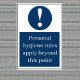 Ideal personal hygiene sticker to remind staff hygiene rules apply.