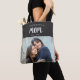This unique and personalized Mom Established Photo of mom and me Gift from child with minimal elegant mom script established date or dates of the year your first child and each additional child was born in modern black and white theme.